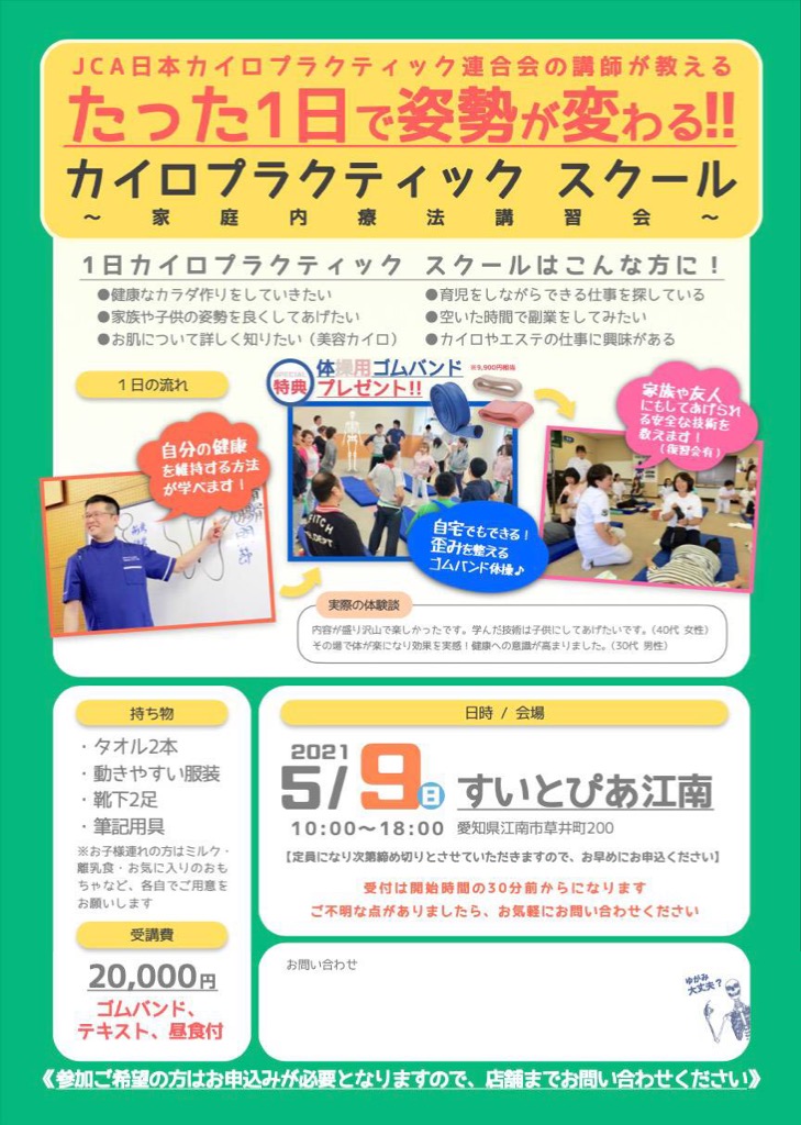 自己メンテナンスの為、家族の健康の為にカイロプラクティックを勉強してみませんか?